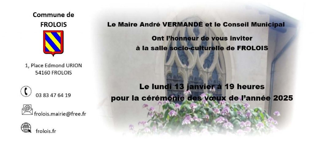 Le Maire André VERMANDÉ, le Conseil Municipal et nos agents ont l'honneur de vous inviter pour la cérémonie des voeux 2025.